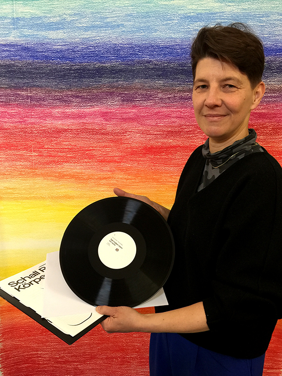Angelika Waniek: Das heißt, es gab eine performative Arbeit, eine Soundinstallation, von der du gleich auch noch ein bisschen erzählen kannst, wenn du möchtest. Und dann hast du überlegt, wie du sie transferieren kann, in was für ein Medium. Und du hast dich für die Schallplatte entschieden.